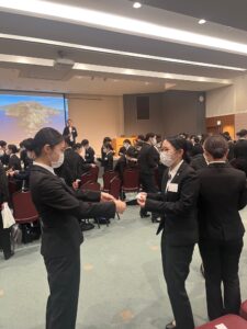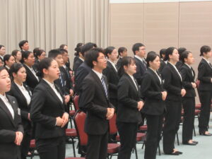 新入社員全員で声を合わせて社歌斉唱
